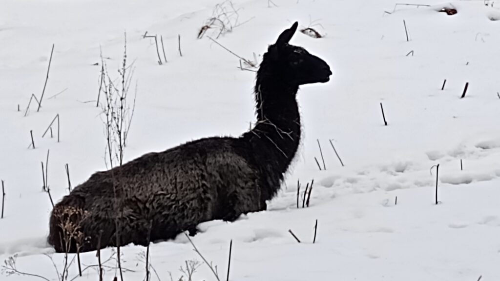 Bei der ehemaligen Jick-Jack-Mühle: aufmerksames Lama