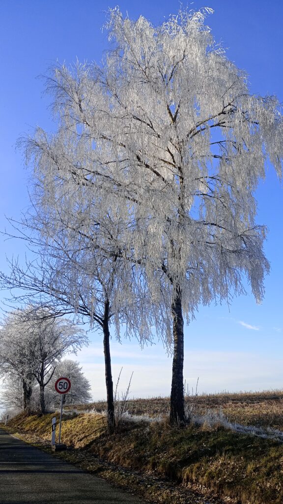 Auf dem Weg nach Rixen: Vereiste Bäume